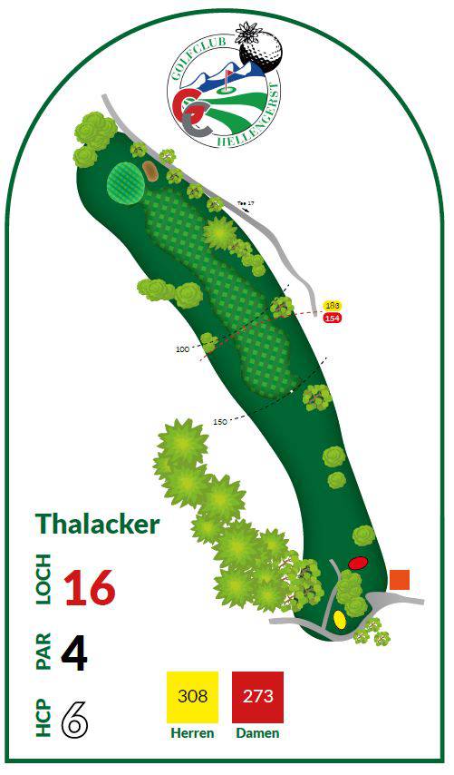 Willkommen zum Finale! Das Inselgrün des spektakulären Schlussloches sorgt für ein spannendes Finale unter Beobachtung der Terrassenbesucher. Wer Par spielen will, muss vor allem den richtigen Schläger wählen, der bei West- oder Ostwind zwischen Pitchingwedge und Eisen 5 liegen kann. Bogeygolfer bevorzugen den sicheren Abschlag vor das Wasser und versuchen über einen guten Pitch zum Erfolg zu kommen.