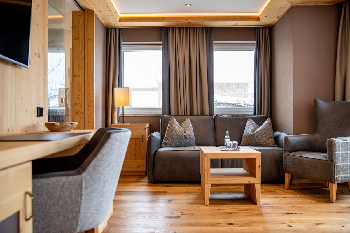 - Combined living/sleeping area, couch and armchair